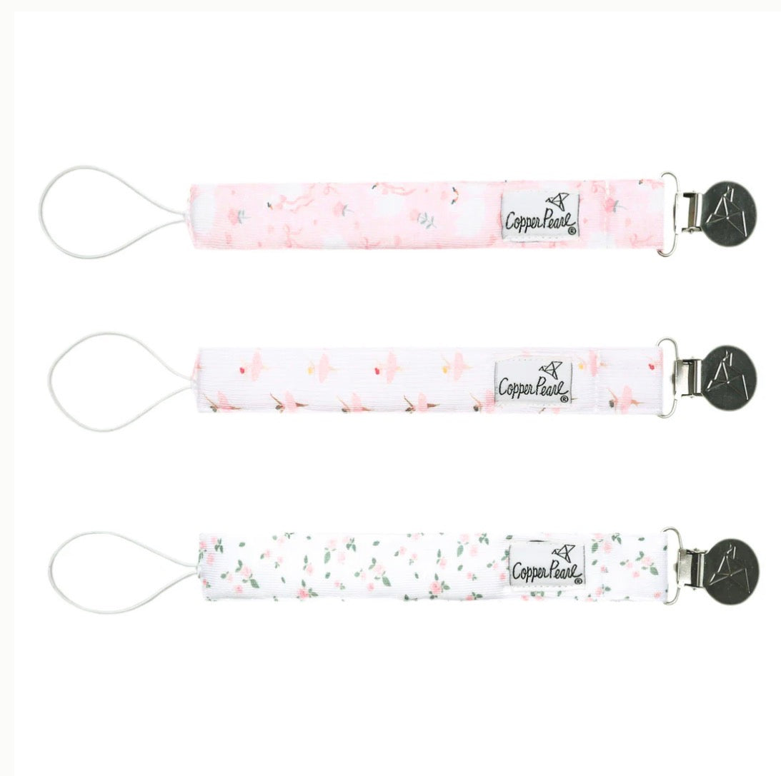 A chic way to keep baby's pacifier close at hand.Offering the ultimate blend of fashion and function, these unique Binky Clip features a premium knit strap lined with absorbent fleece to help soak up drool. Simply attach baby's pacifier or teether to one end, then fasten the clip to clothing, blankets or baby gear. Oh, and by the way the set includes three Binky Clips to keep with you wherever you go - no more floor drops or pacifier pick-ups!