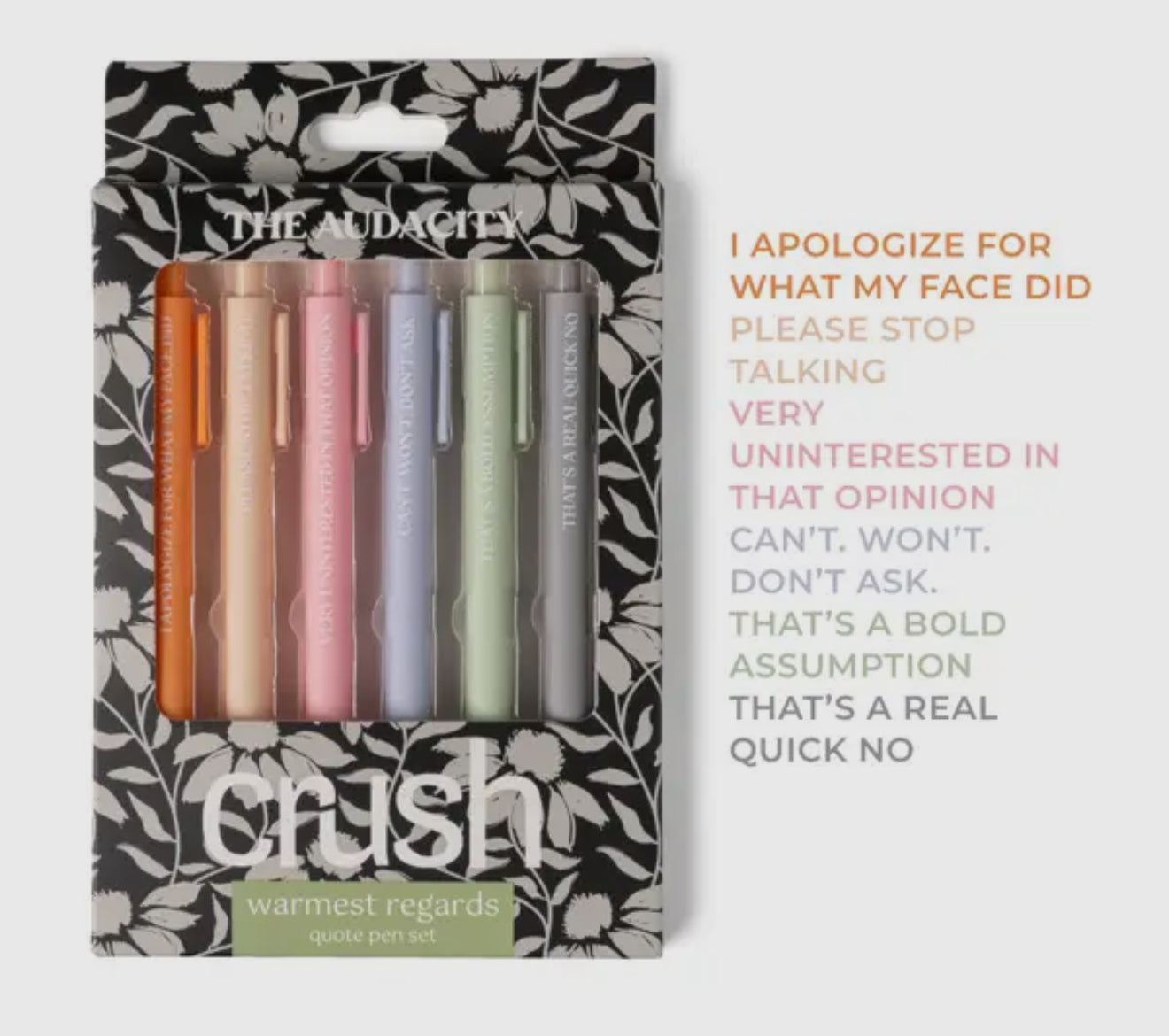 These gift-ready sets come in three themes with funny, relatable quotes on each pen. Customers can choose from Worth The Hype (encouraging, positive quotes), Work Life Imbalance (snarky office quotes) and The Audacity (everyday angst). Perfect for birthdays, professional gifts, campus life and self-purchase!