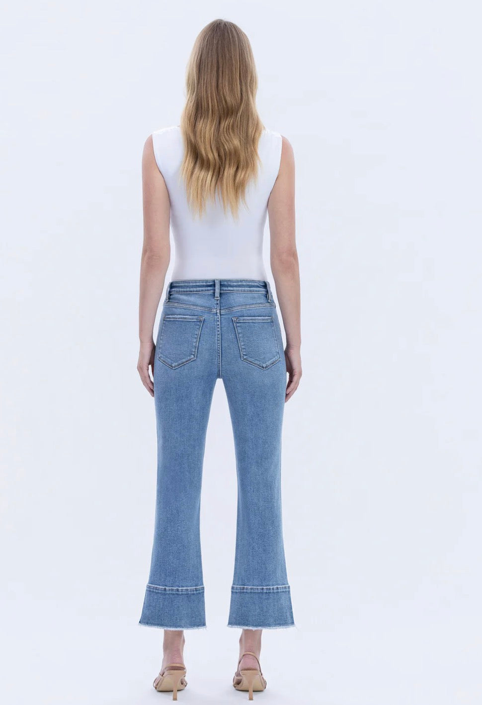 The Flying Monkey High Rise Trouser Slit Hem Kick Flare Jeans feature a contemporary design that combines style and comfort. The high-rise fit offers support and elevates the silhouette, while the slit hem enhances breathability and movement. This pant style is effective in providing a modern aesthetic suitable for various occasions.