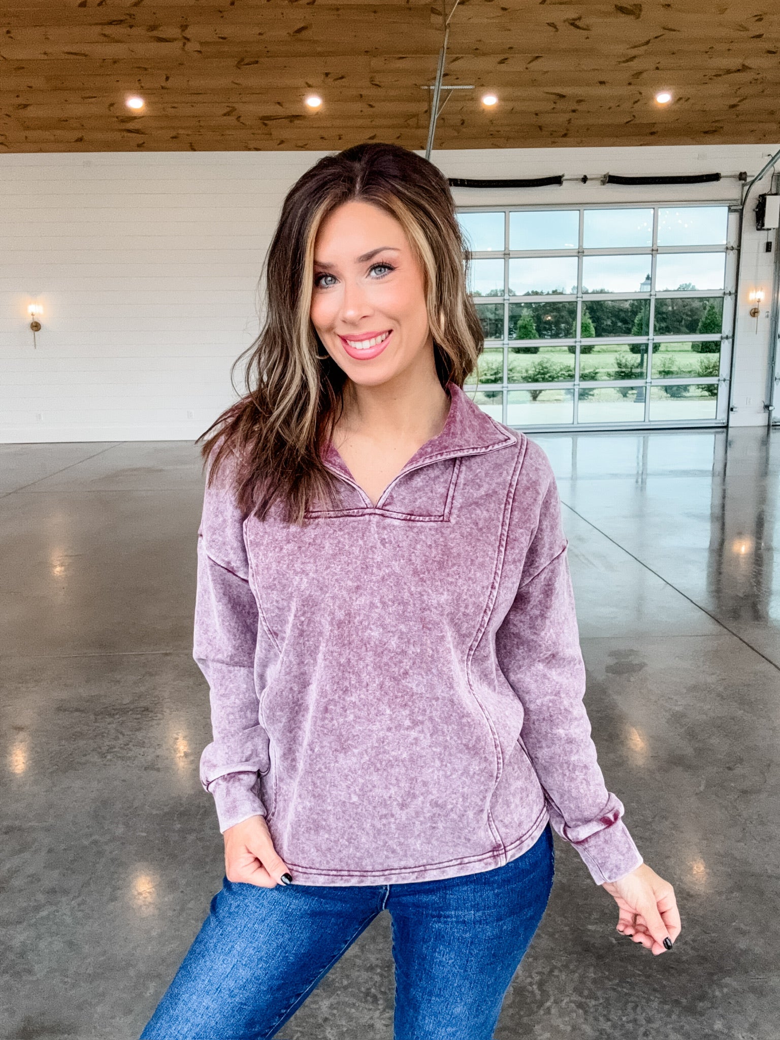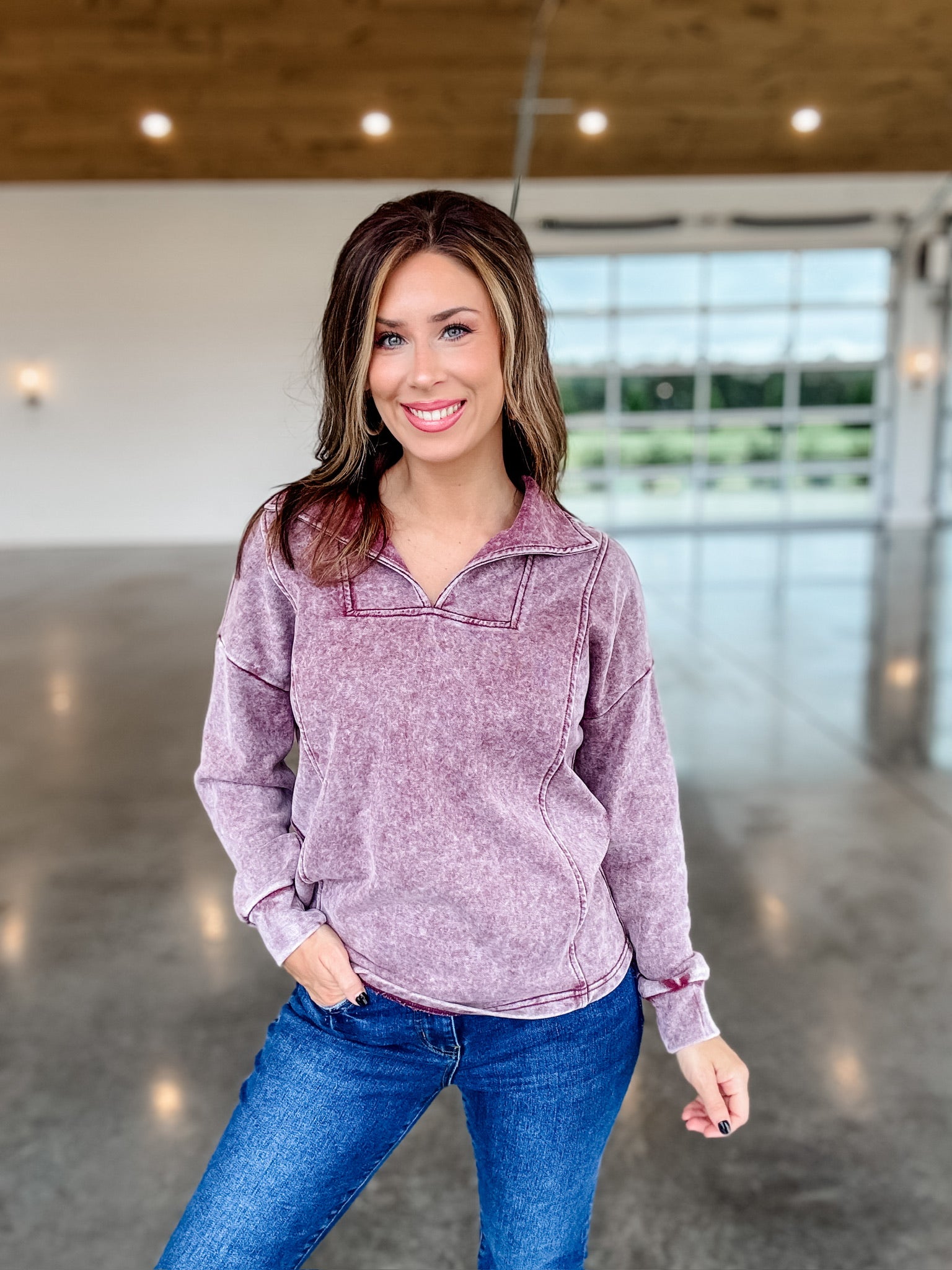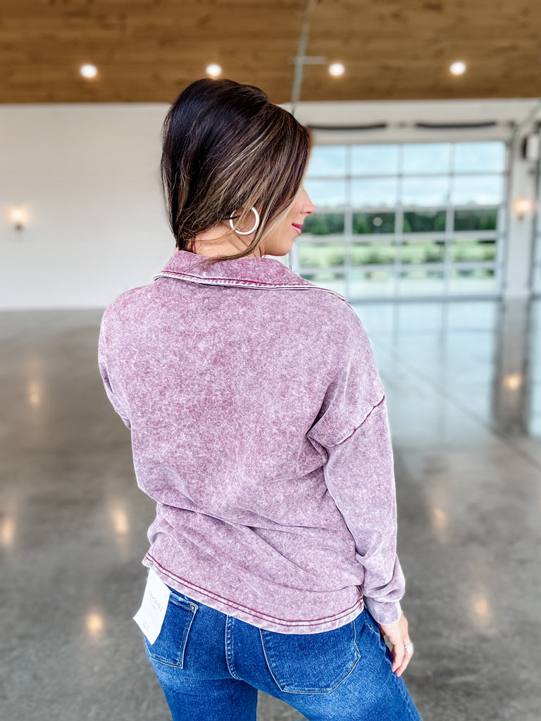 Stay stylish and comfortable with our Moving On Pullover. Featuring a split neck design and unique acid wash for a touch of edginess, this burgundy pullover is a must-have for any fashion-forward wardrobe. Made with high-quality materials, it's perfect for all-day wear and will keep you cozy without compromising on style.