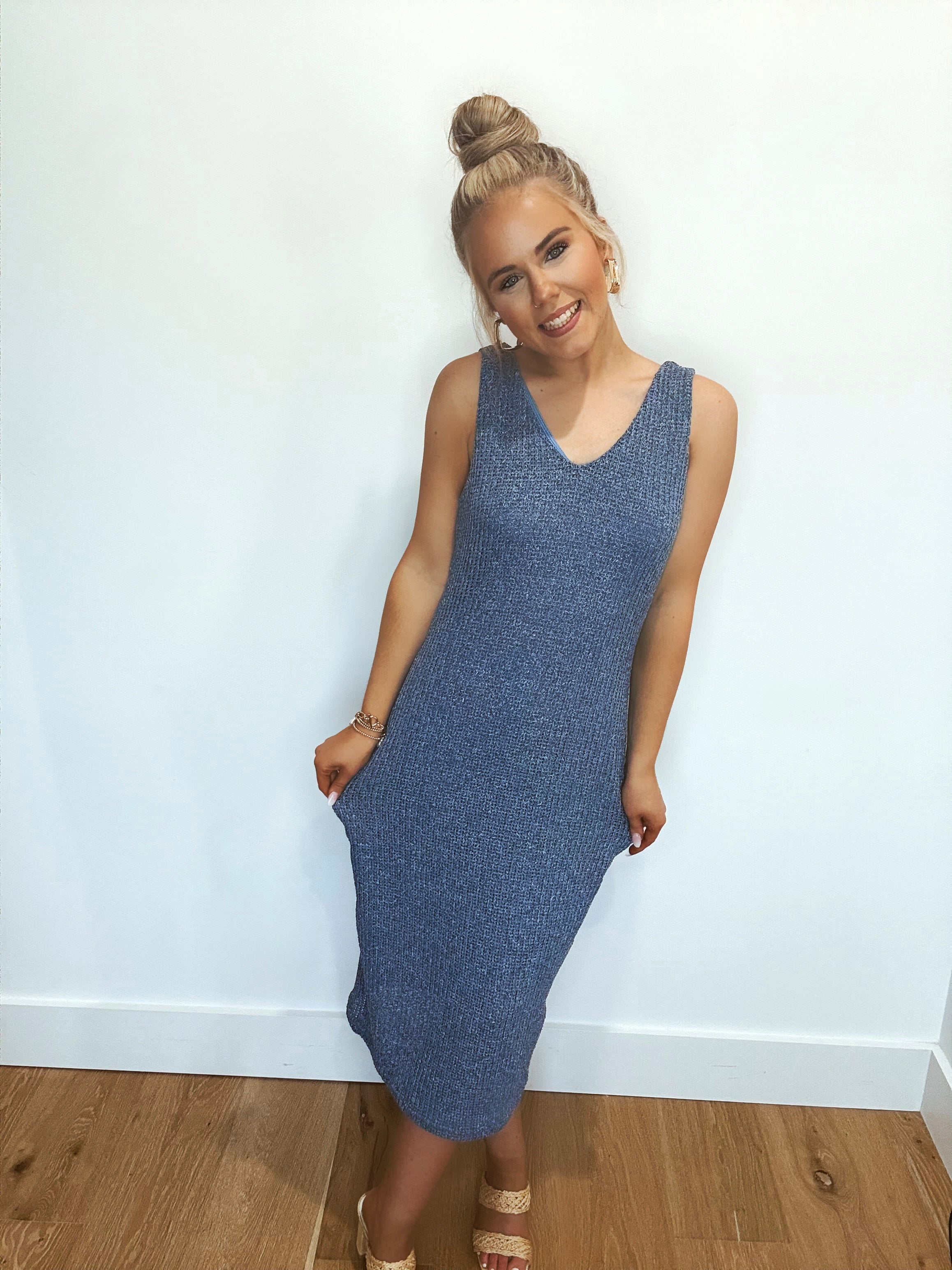 Introducing the Ocean Blue knitted Maxi Dress - the perfect addition to your vacation or laid back event wardrobe. Made from a comfortable, ocean blue fabric, this maxi dress combines simplicity with style. Stay effortlessly chic and comfortable with this must-have dress.