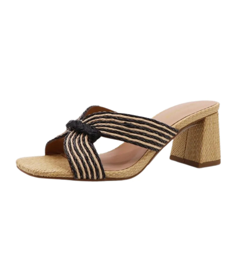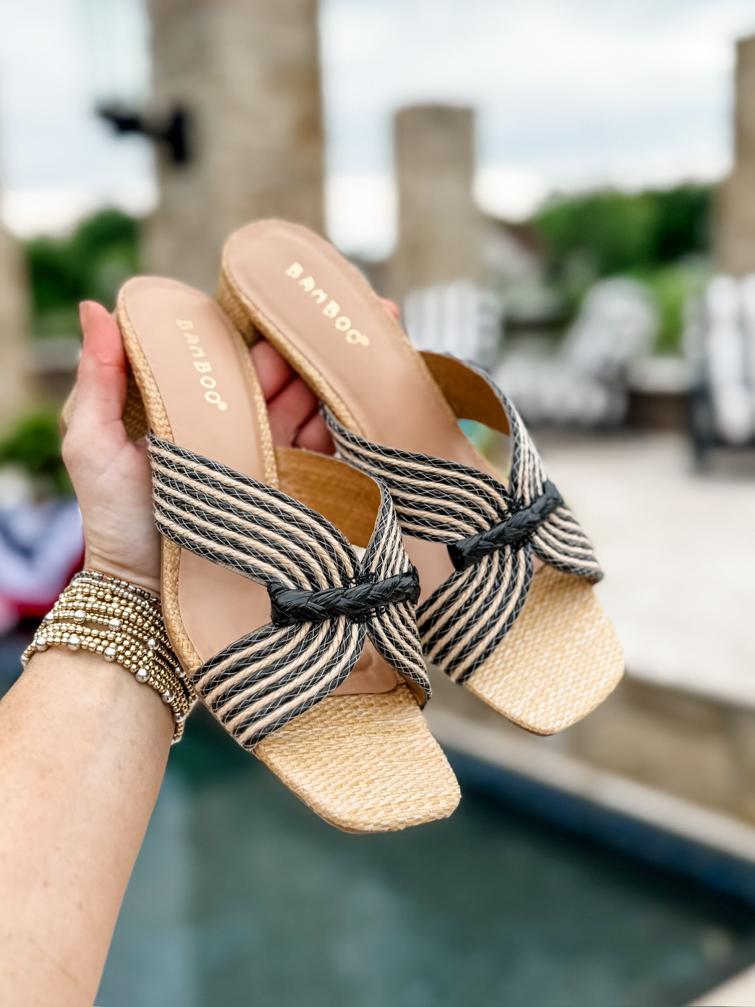 Introducing the Bamboo Vera Woven Heel, featuring a block heel and knotted woven straps for an elegant, yet comfortable fit. Made from sustainable bamboo, these heels are perfect for any occasion. Elevate your style with these eco-friendly and stylish heels.