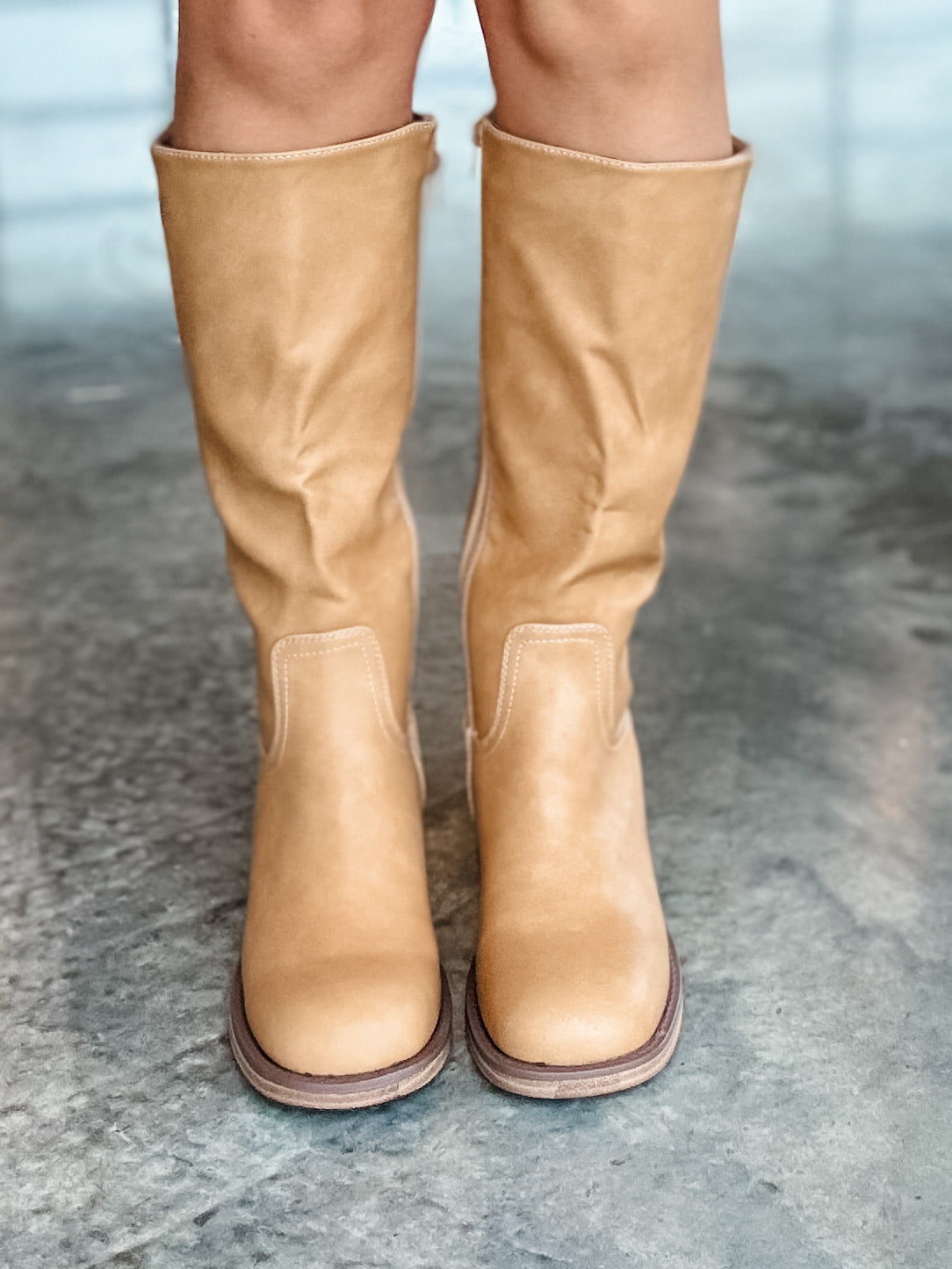 Introducing Camel Boots, perfect for adding a touch of sophistication to any outfit. These knee high boots are crafted with a sleek camel tone, providing a versatile option for any occasion. Step out in style and elevate your wardrobe with these timeless and elegant boots.