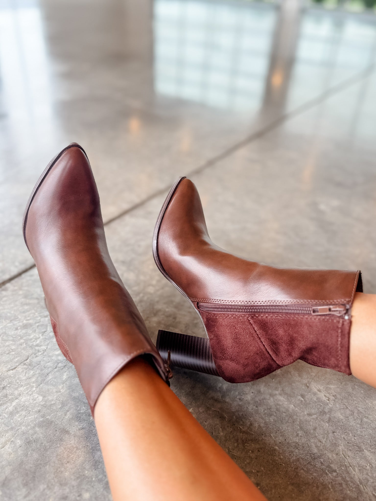 Elevate your style with the Soda Mover Pointed Toe Boot in Brown. These trendy ankle boots offer a versatile and sexy look, perfect for casual or dressed up occasions. With a 5.5" shaft height and a 3.5" heel height, these boots provide both height and comfort. The two-tone design adds a modern touch to any outfit.