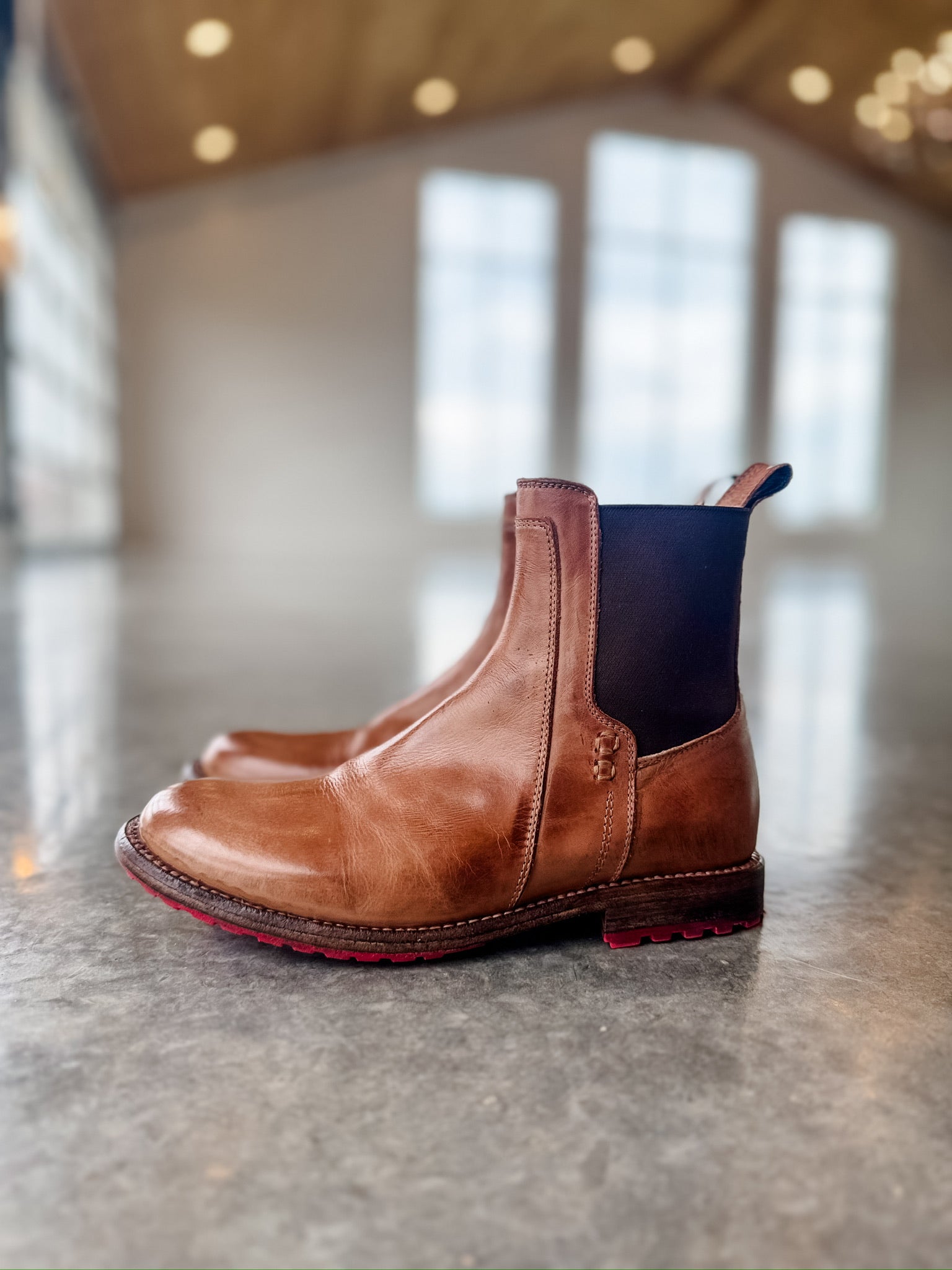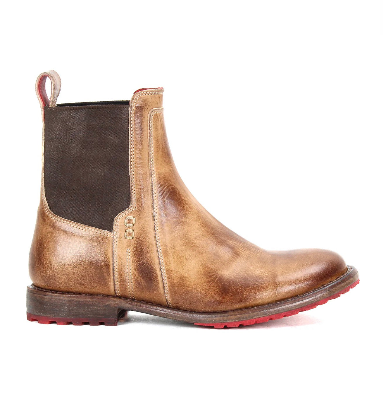 Ethic is for everyday versatility, this two-toned Chelsea boot features dual stretch side panels made from breathable mesh for flexibility and comfort. A vegetable-tanned leather lining ensures a natural, soft feel inside, while the back pull tab makes for easy on-and-off. Finished with a stacked leather heel and red Vibram sole for durable traction, it's a modern take on a timeless silhouette.