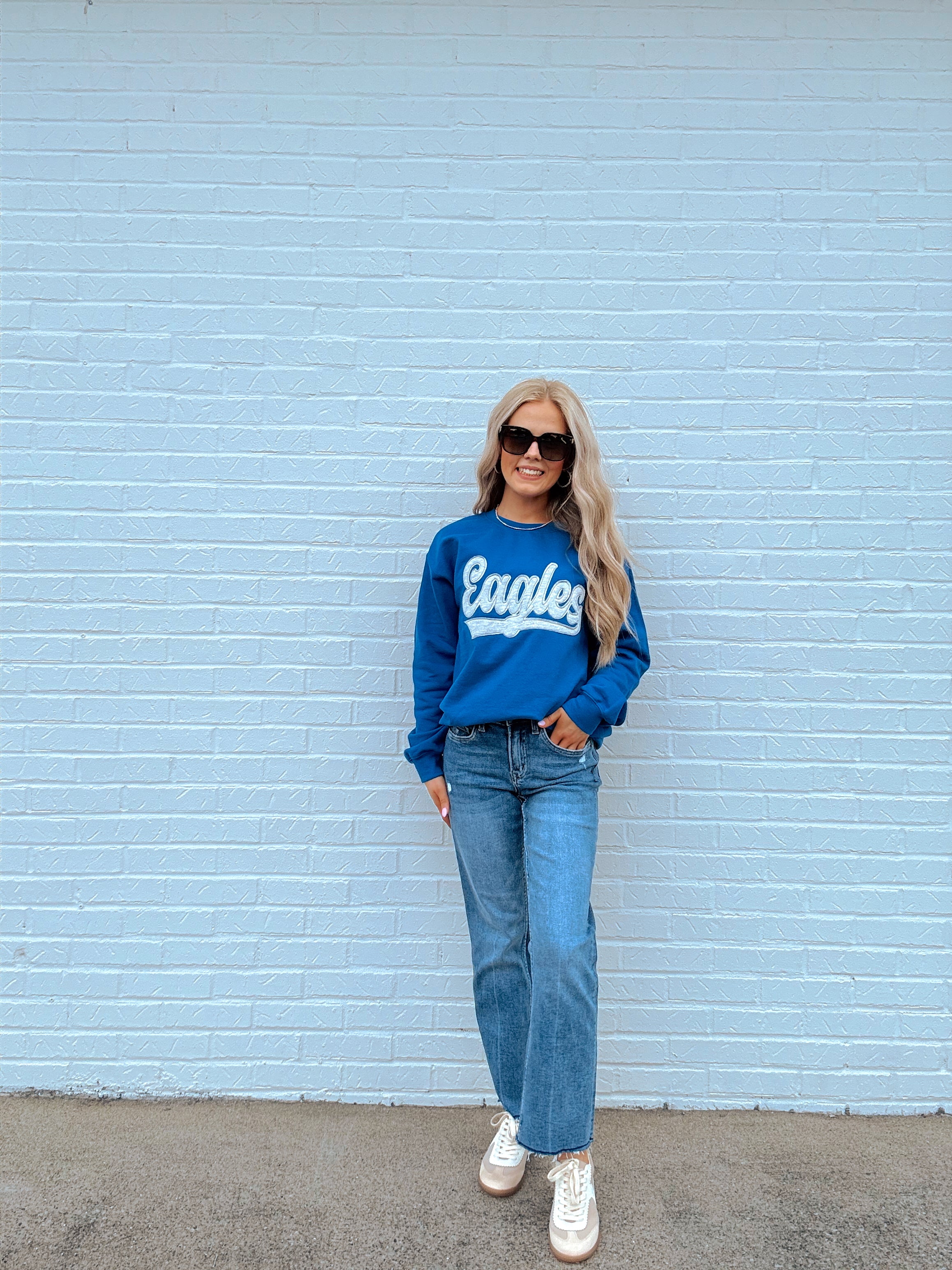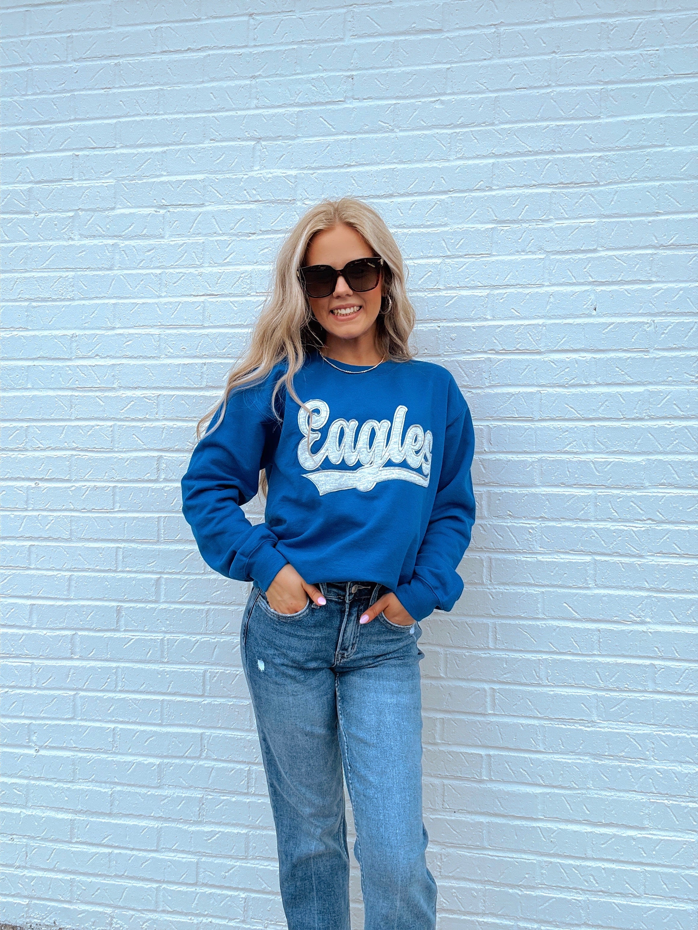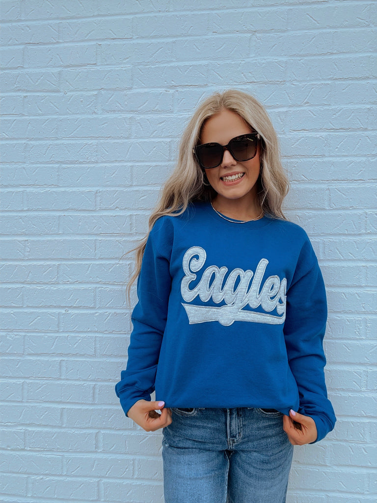 Introducing the Eagles Victory Script Gildan Sweatshirt, the perfect addition to any fan's collection. The sweatshirt features a sleek blue and gray design with a comfortable crewneck, made with high-quality materials. Stay warm and show your team pride with this must-have sweatshirt.