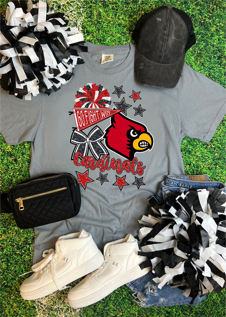 Show off your school spirit with our Comfort Colors Go! Fight! Win! Cardinals Spirit Collage Tee. Available in both kids and adult sizes, this tee features a sparkling glitter design to add a touch of glamour to your game day attire. Show your love for the Cardinals with this must-have piece.