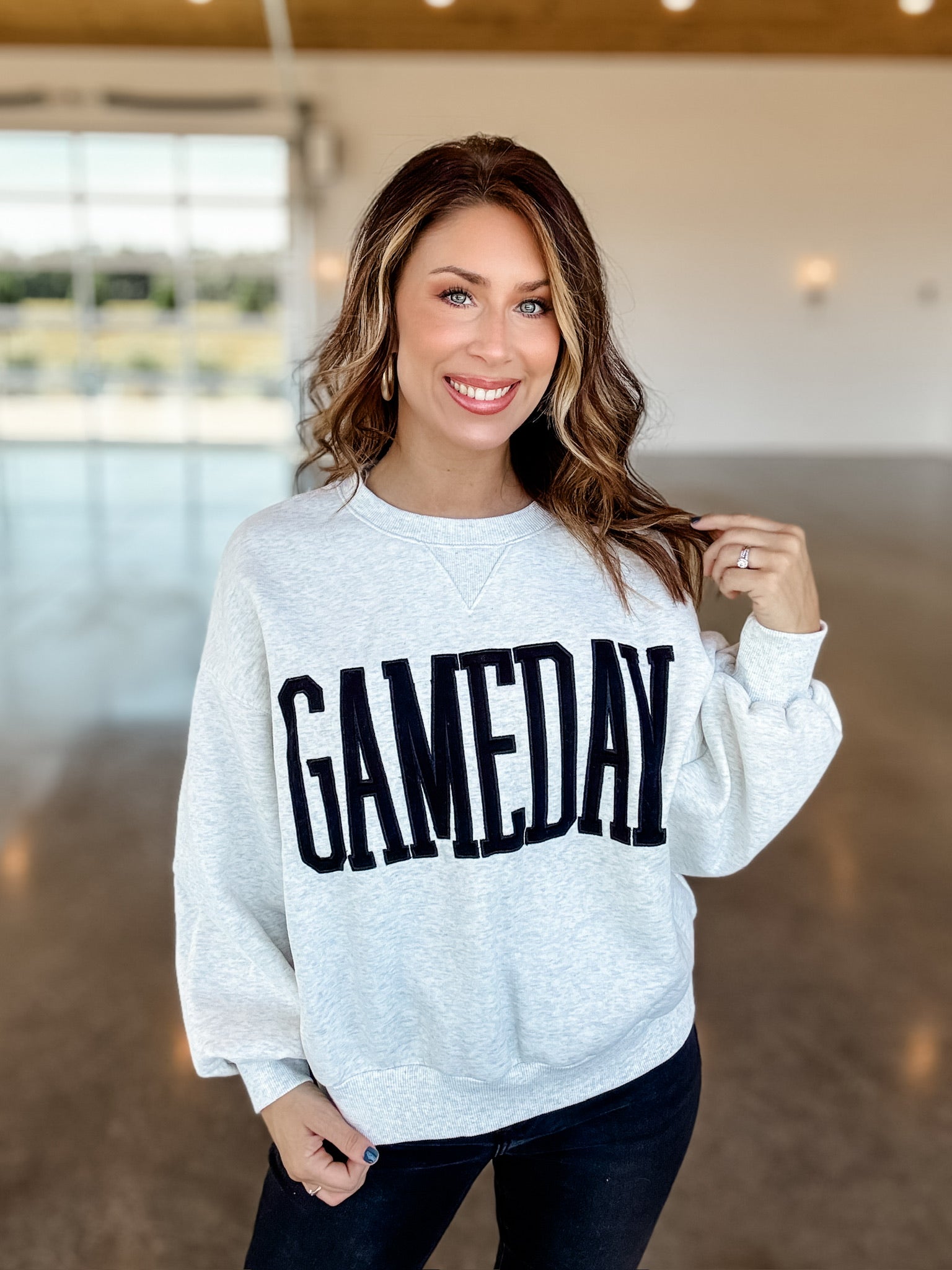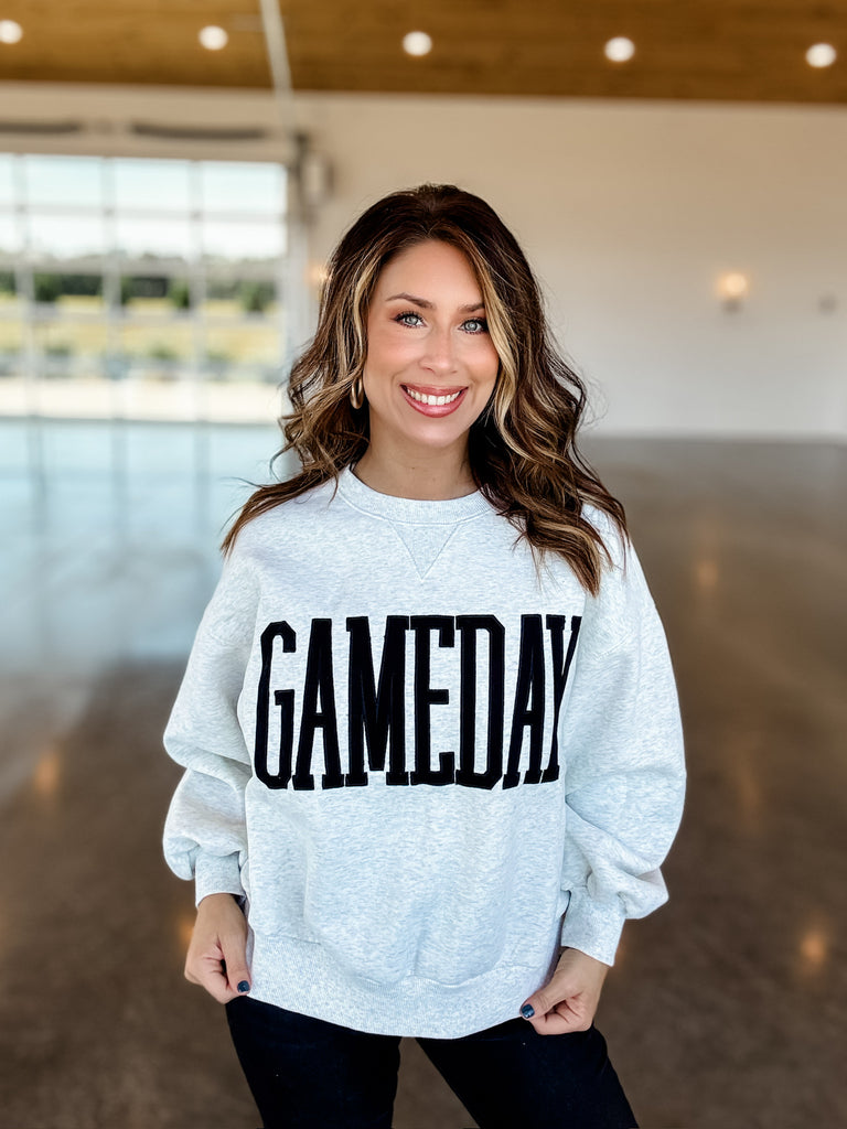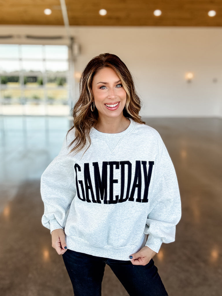Expertly designed for stylish comfort, this gray waist length Gameday Crewneck features a classic crew neck and "Gameday" printed in heather gray. Made with high-quality materials, this trendy piece is perfect for showing off your team spirit while staying cozy and fashionable.