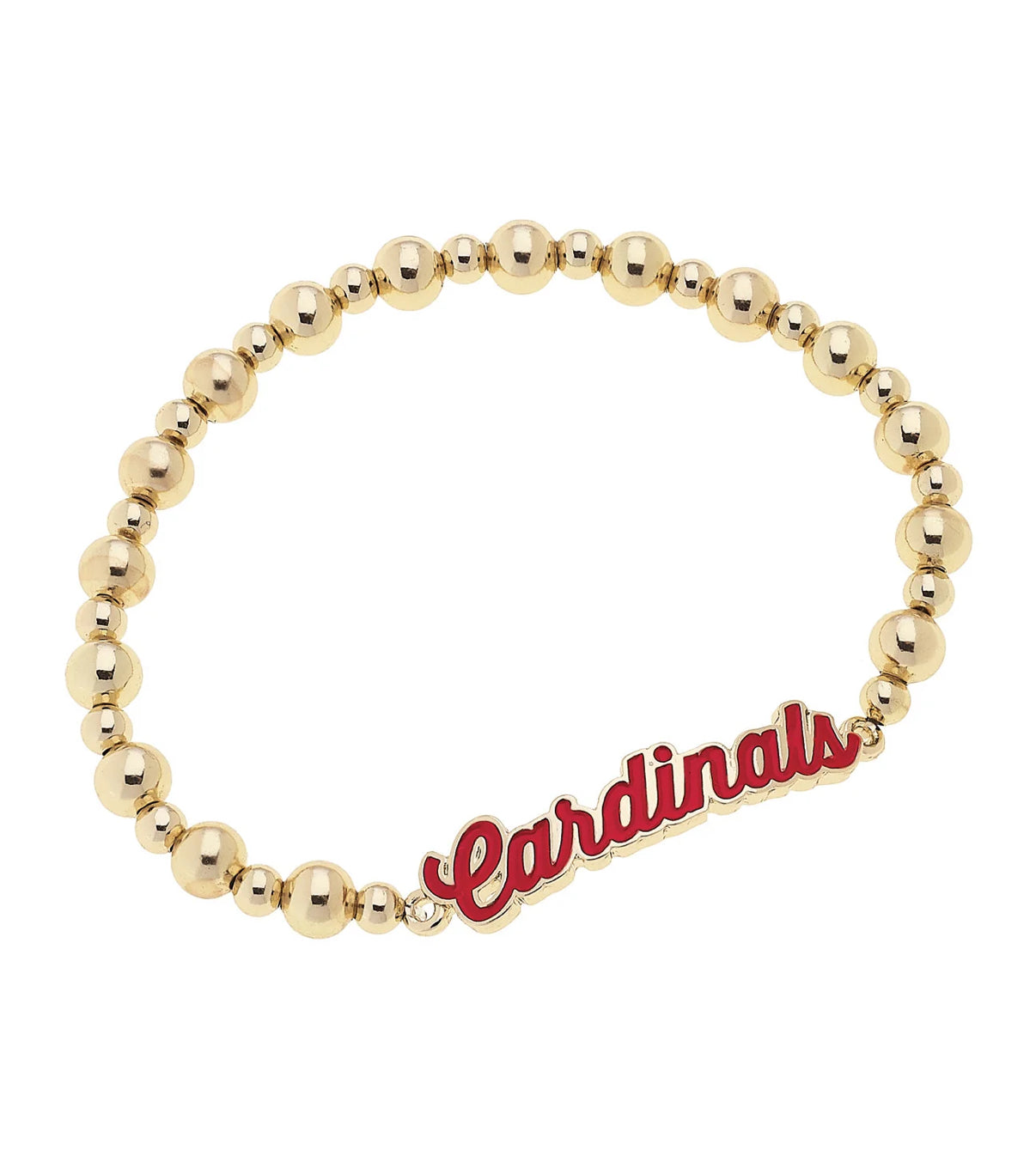 This Louisville Cardinals Autograph Enamel Stretch Bracelet features a striking combination of red and shiny gold beads, including various sized ball beads. Elevate your game day look with this stylish accessory perfect for any Cardinals fan. Show off your team spirit and add a touch of luxury to your ensemble.Add a touch of elegance to your game day outfit with our Louisville Cardinals Autograph Enamel Stretch Bracelet. The shiny gold beads complement the red cursive writing, making it the perfect accessory for any Cardinals fan. This is a must-have for showing off your team pride.
