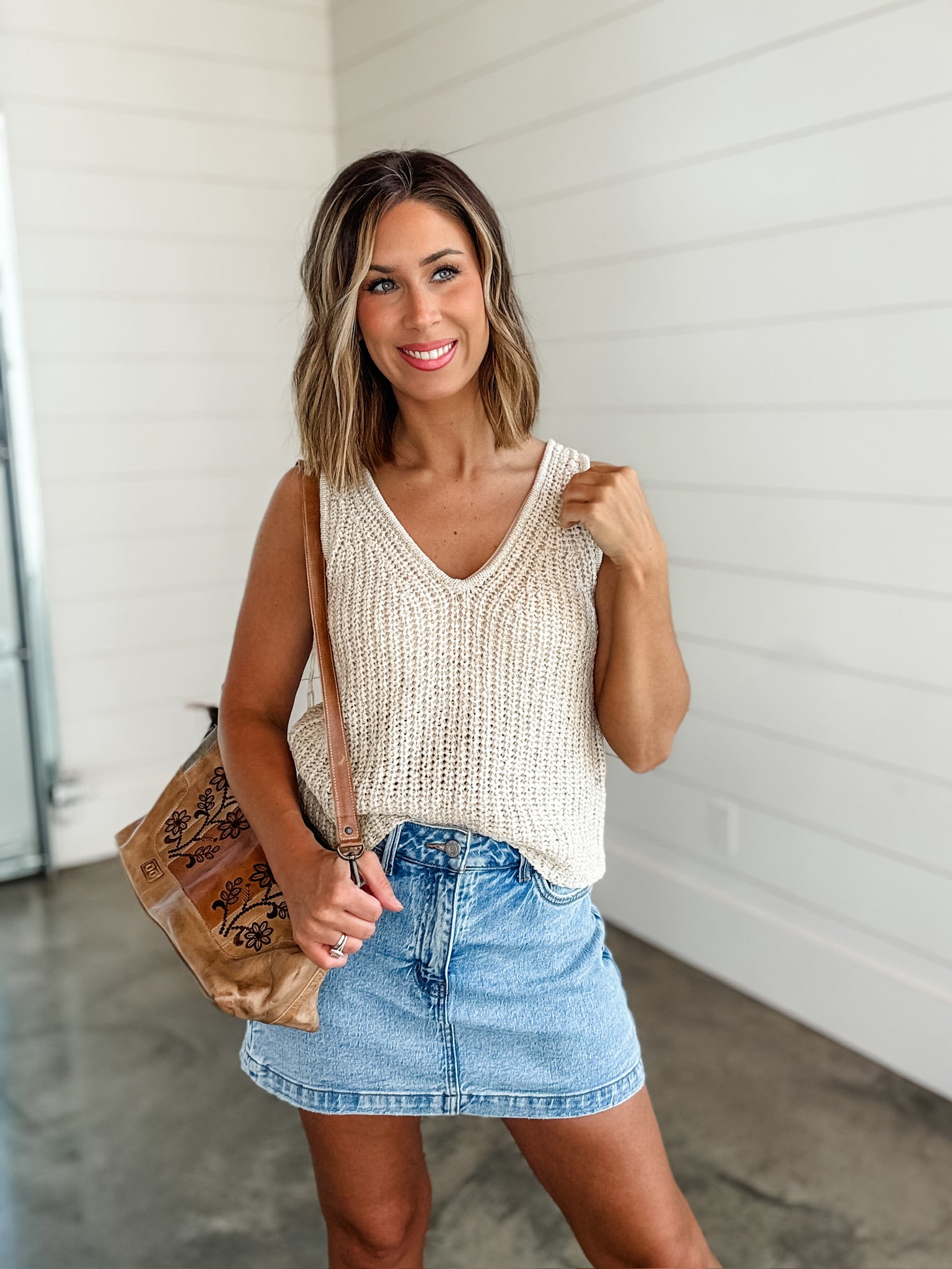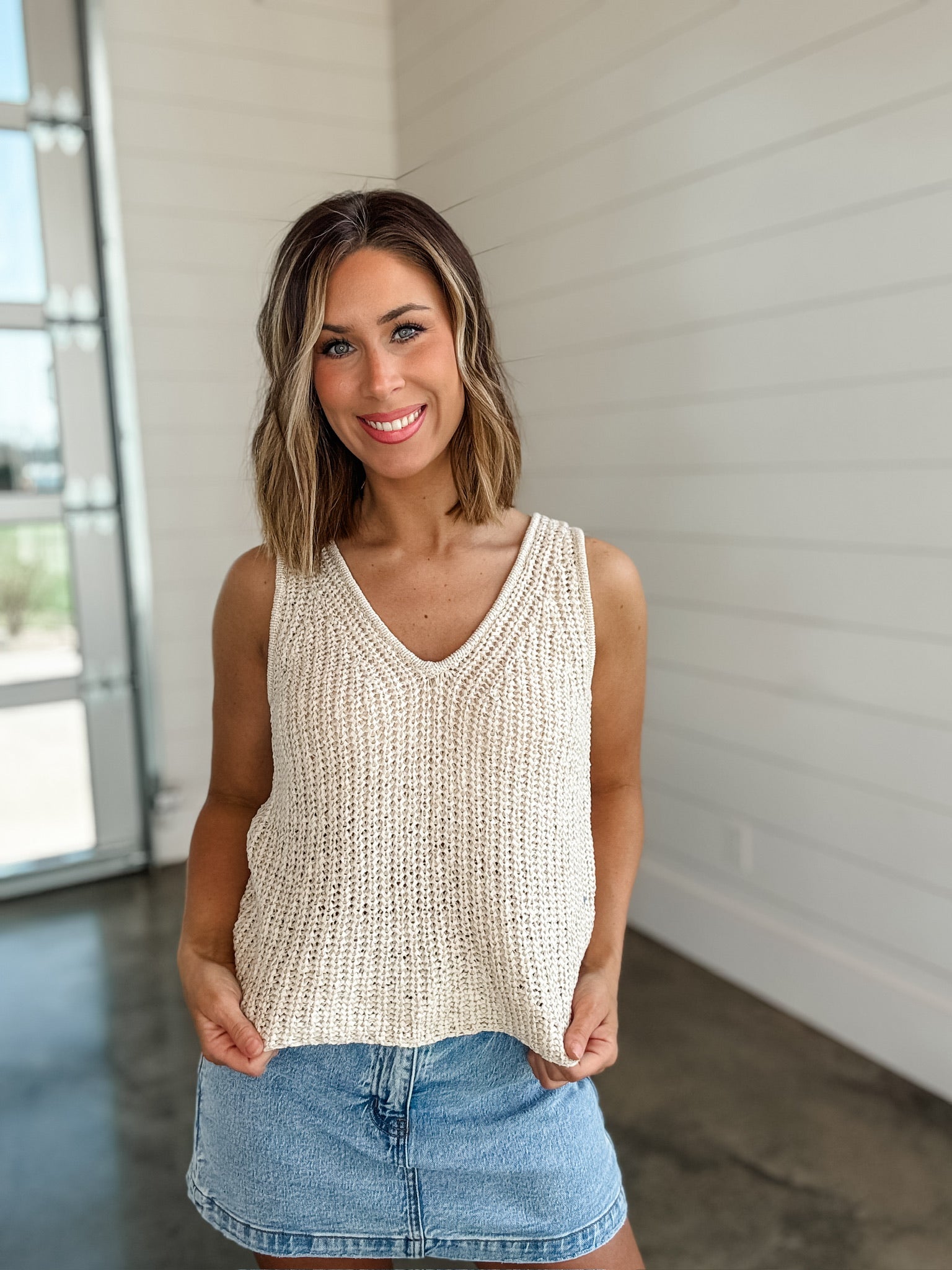 The Lost In You Knit Tank Top is crafted from a cream knitted fabric, offering both comfort and style. Its breathable material ensures temperature regulation, making it suitable for various climates. The design allows for ease of movement, ideal for both casual wear and active situations.
