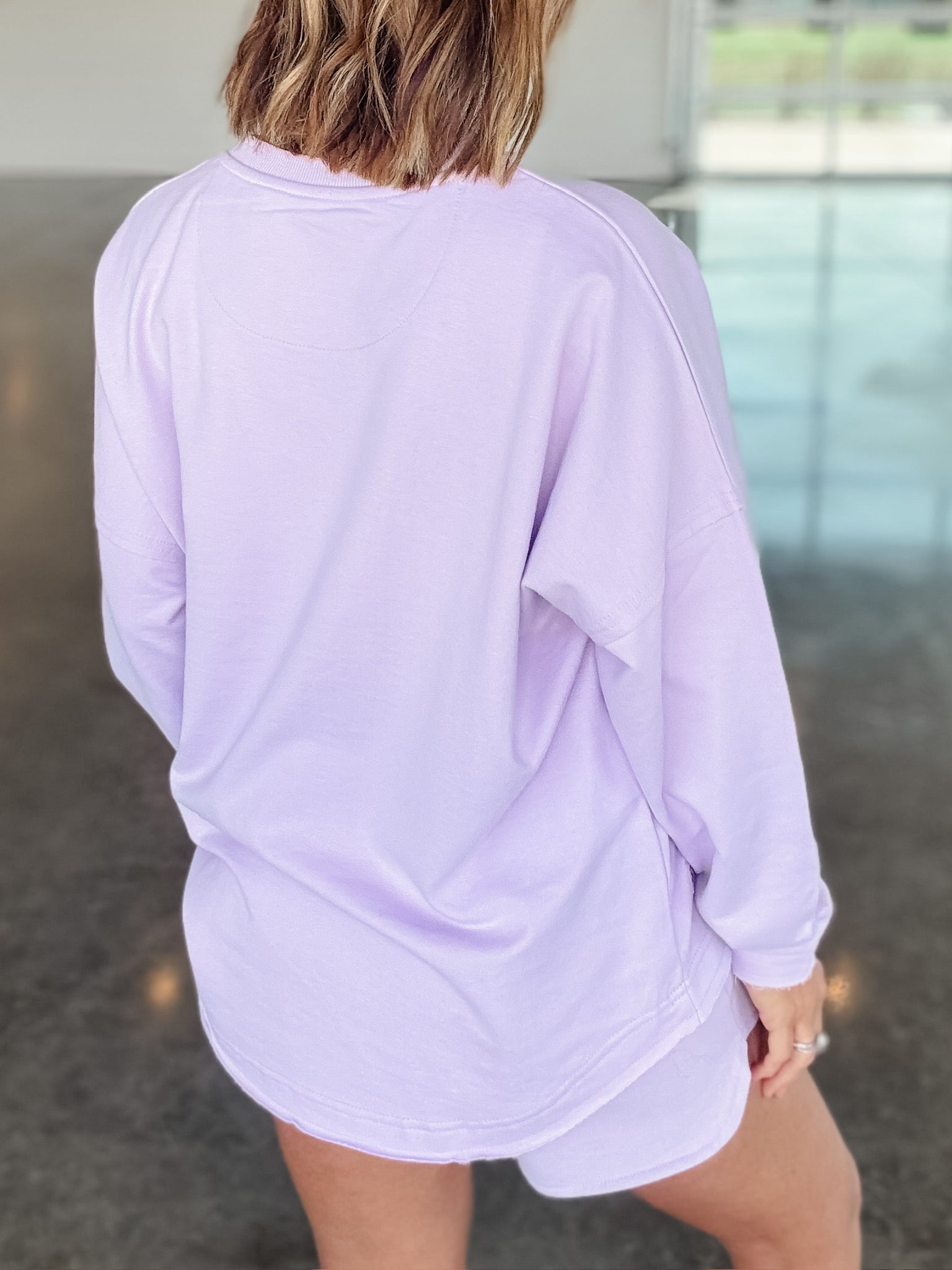 The Royce French Terry Top in lavender offers a cozy and stylish layering option, ideal for casual wear. Its soft fabric enhances comfort while its versatile design allows for effortless pairing with various outfits, making it a practical choice for daily use.