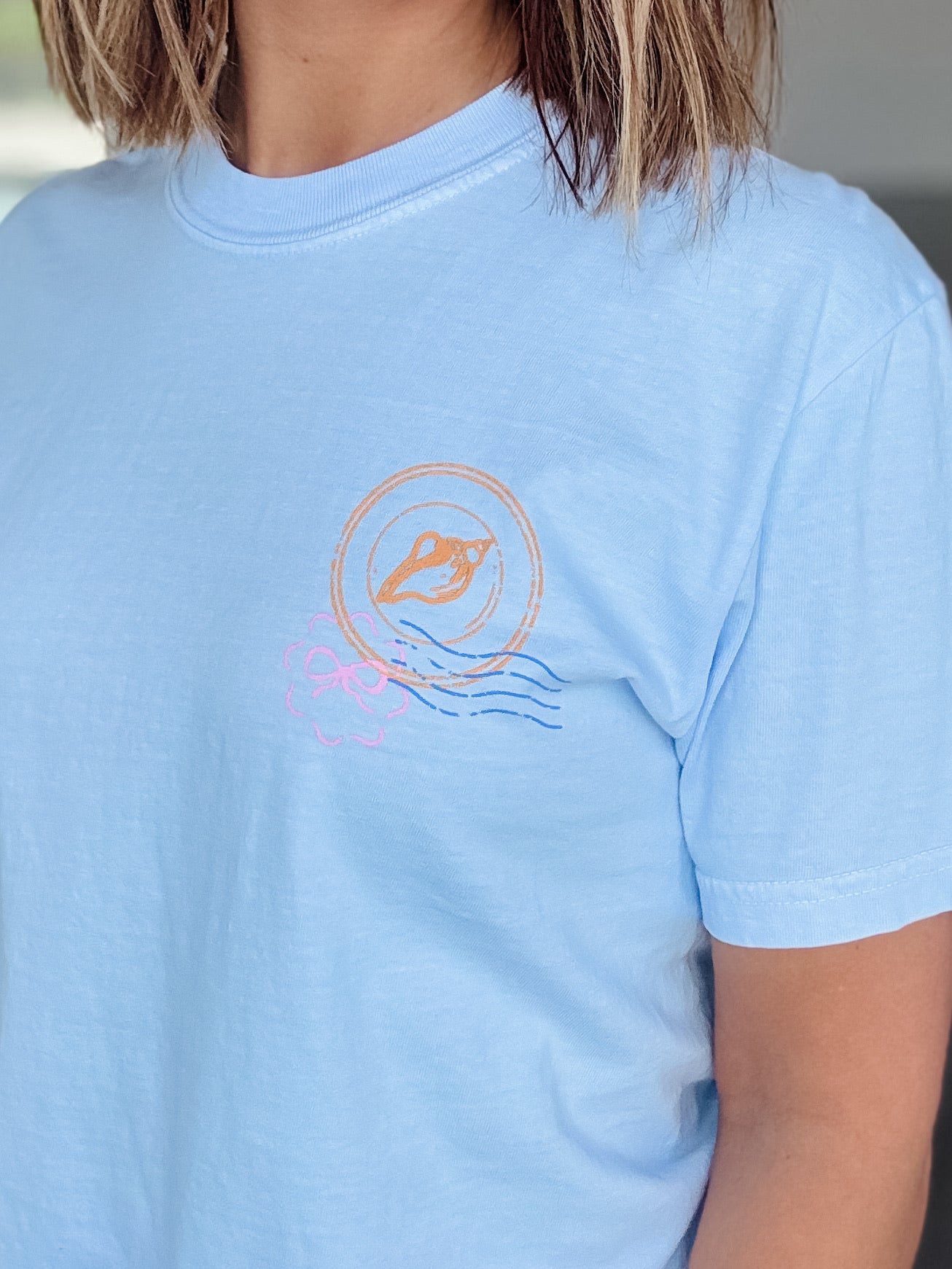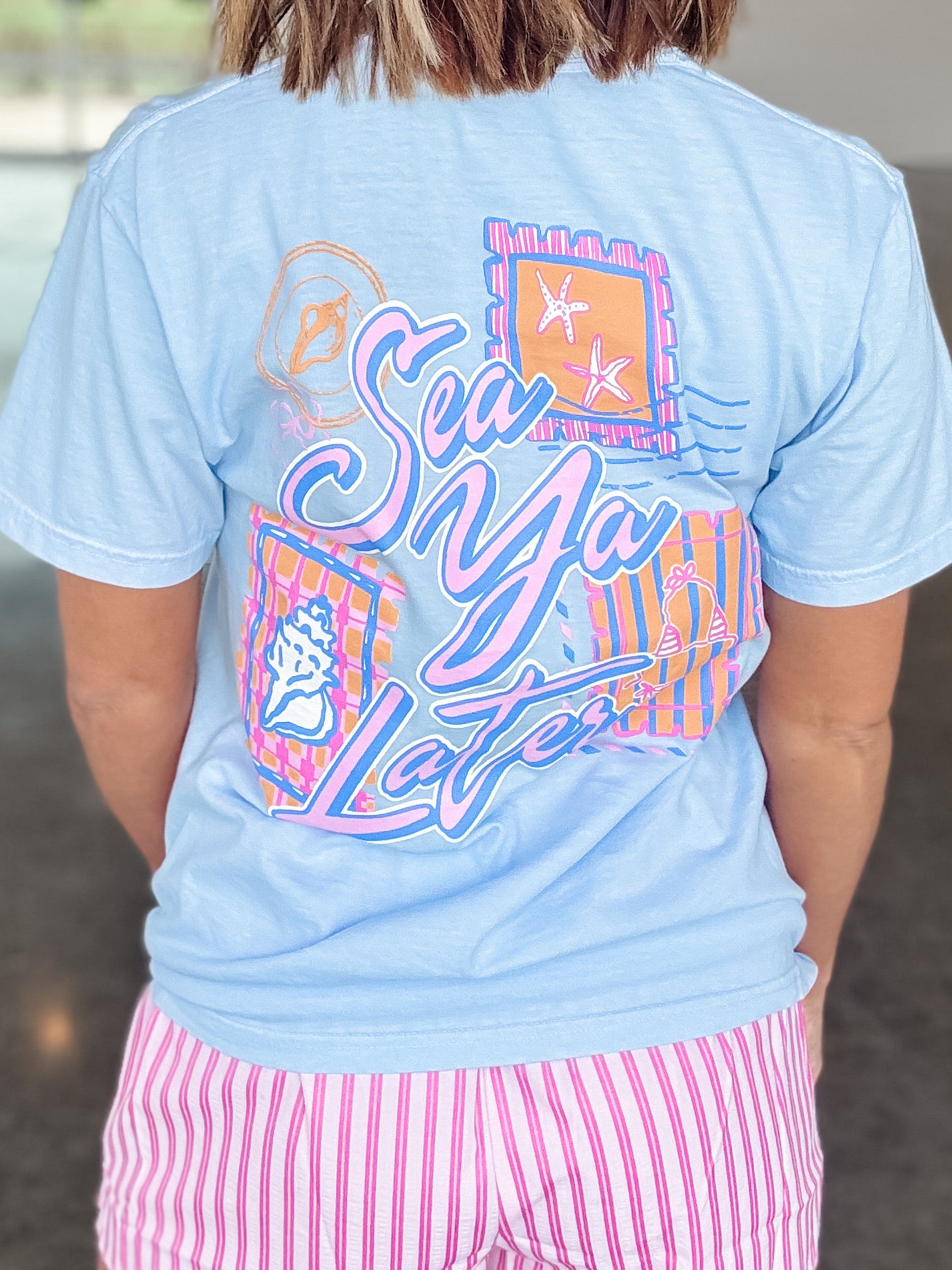 The Sea Ya Later Tee is a beach-themed t-shirt designed for comfort during outdoor activities. Made from breathable fabric, it provides moisture-wicking properties, which are essential for maintaining dryness and comfort in warm climates. Its casual design makes it suitable for both beach outings and everyday wear.