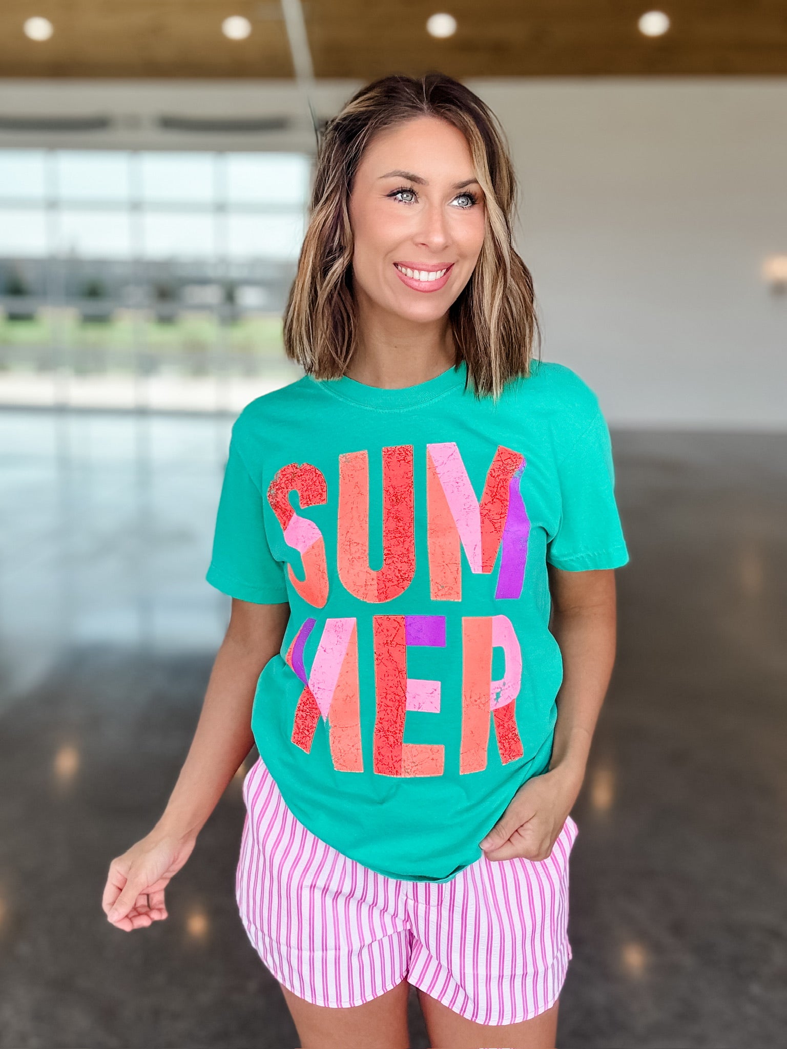The Summer Colorblock Tee is designed in a vibrant teal hue, perfect for warm weather. Its colorblock style enhances visual appeal while promoting versatility in casual outfits. This piece is crafted to offer comfort and breathability, making it an ideal choice for summer activities.
