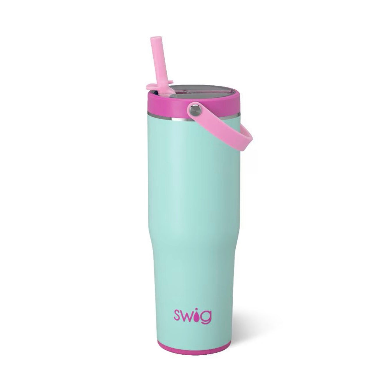 This To-Go tumbler combines our new dual threaded Flip + Sip leakproof lid, flex carry handle, and is cup holder-friendly. The straw features a curved tab that makes it easy to flip open for smooth sipping. When you're on the go, snap the straw shut for a leakproof, worry-free experience.