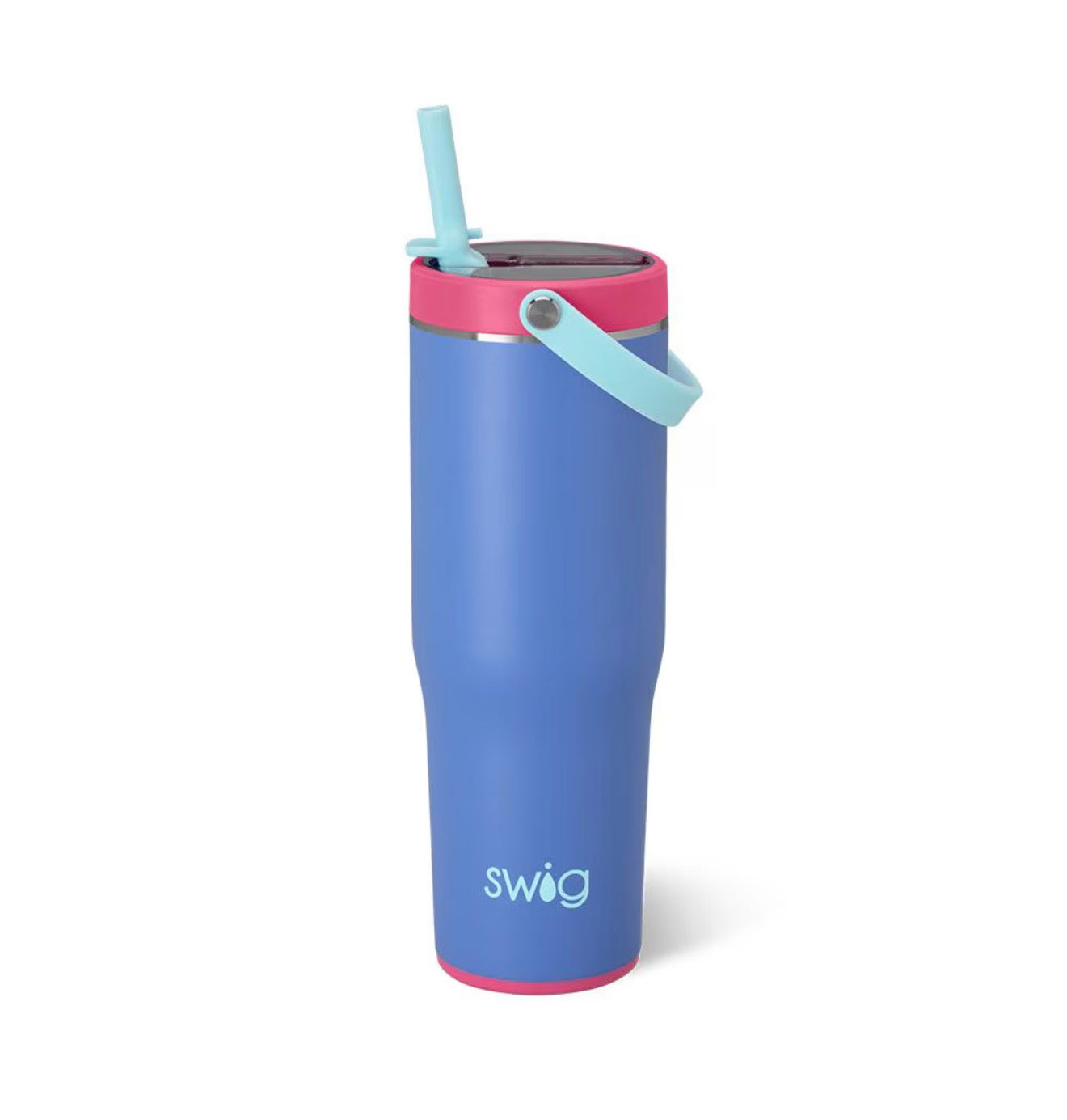 This To-Go tumbler combines our new dual threaded Flip + Sip leakproof lid, flex carry handle, and is cup holder-friendly. The straw features a curved tab that makes it easy to flip open for smooth sipping. When you're on the go, snap the straw shut for a leakproof, worry-free experience.