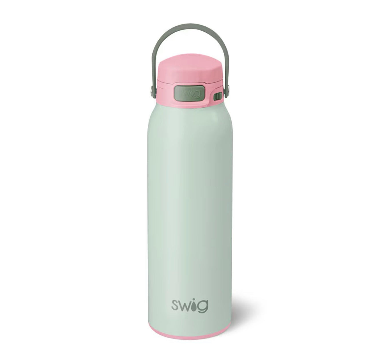 This innovative push-button cap with locking mechanism makes hydrating on the go leak-free and worry-free. Pop open the top to easily sip and flip open the cap to refill without the inconvenience of twisting it off. The innovative lid design gives you the option to sip freely or chug quickly. Grab-and-go flex handle is convenient for carrying on hikes and hooking in lockers.
