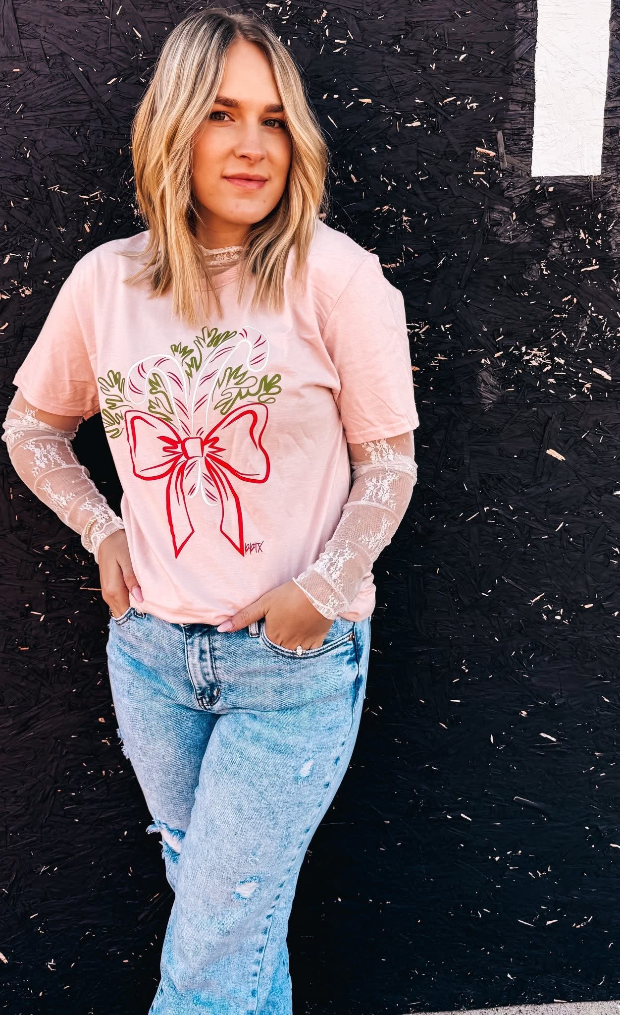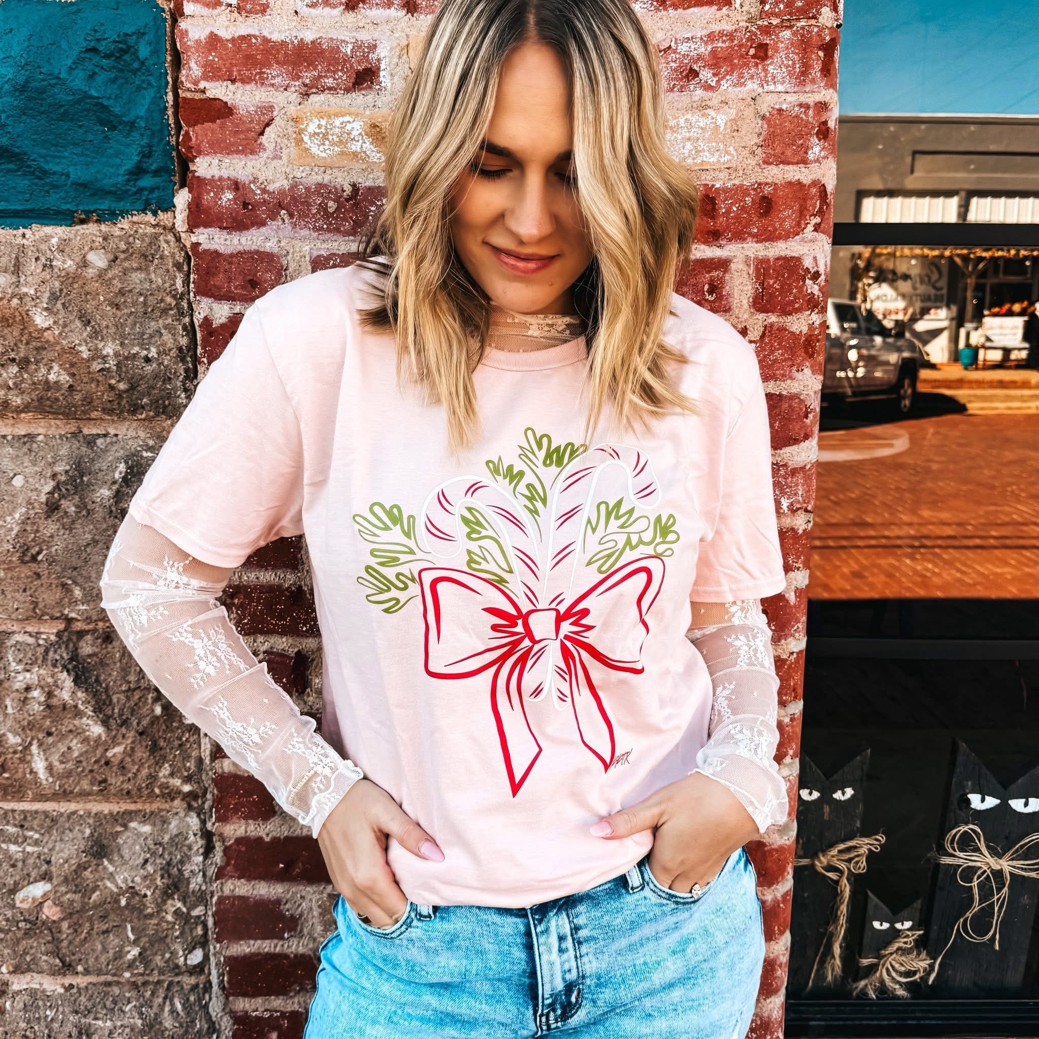 Add a touch of festive sweetness to your wardrobe with our Candy Cane Christmas Tee. This tee features a playful pink candy cane design, perfect for spreading holiday cheer. Made from high-quality materials for a comfortable fit, this tee is sure to be a fun addition to your holiday attire.