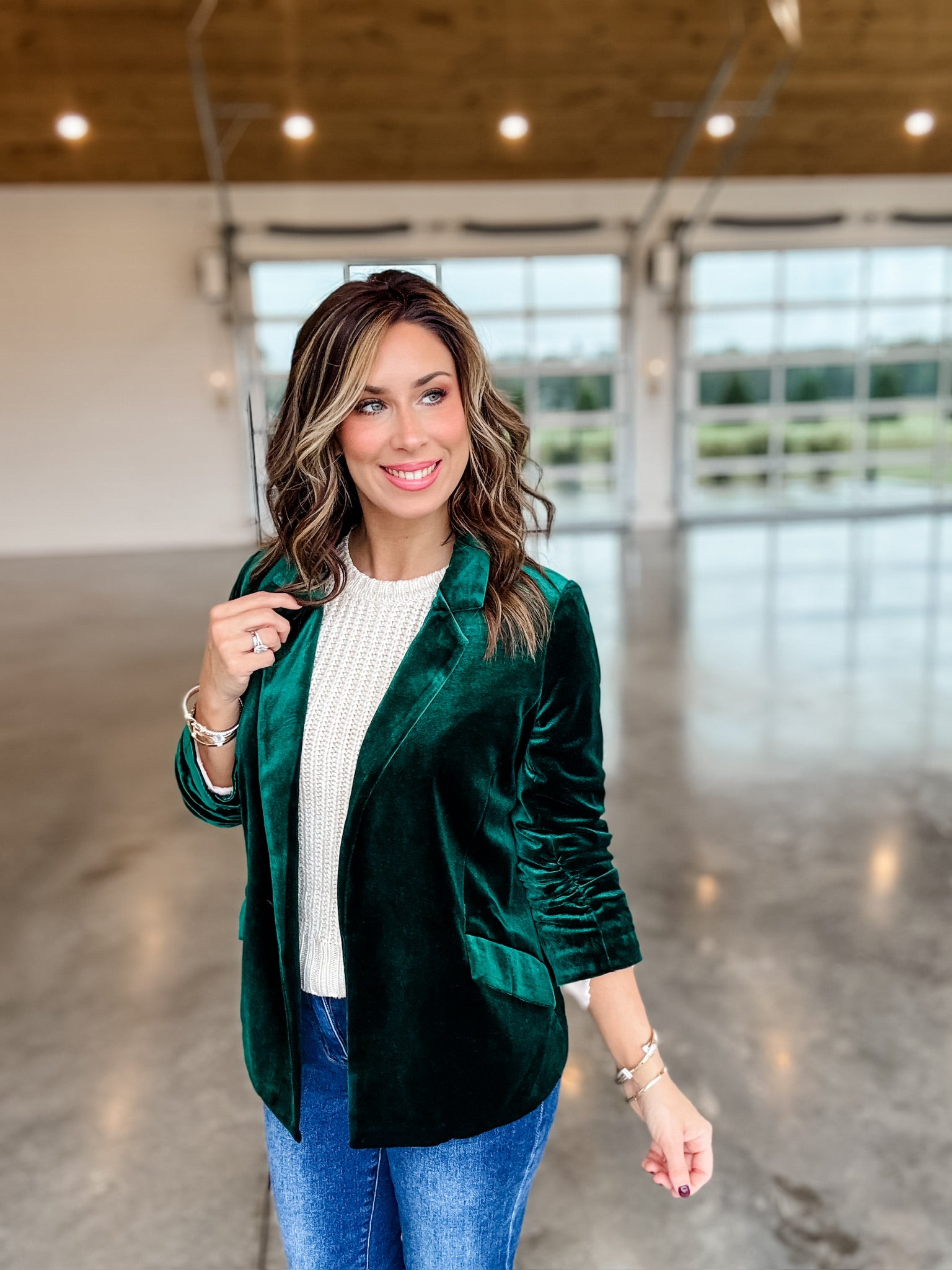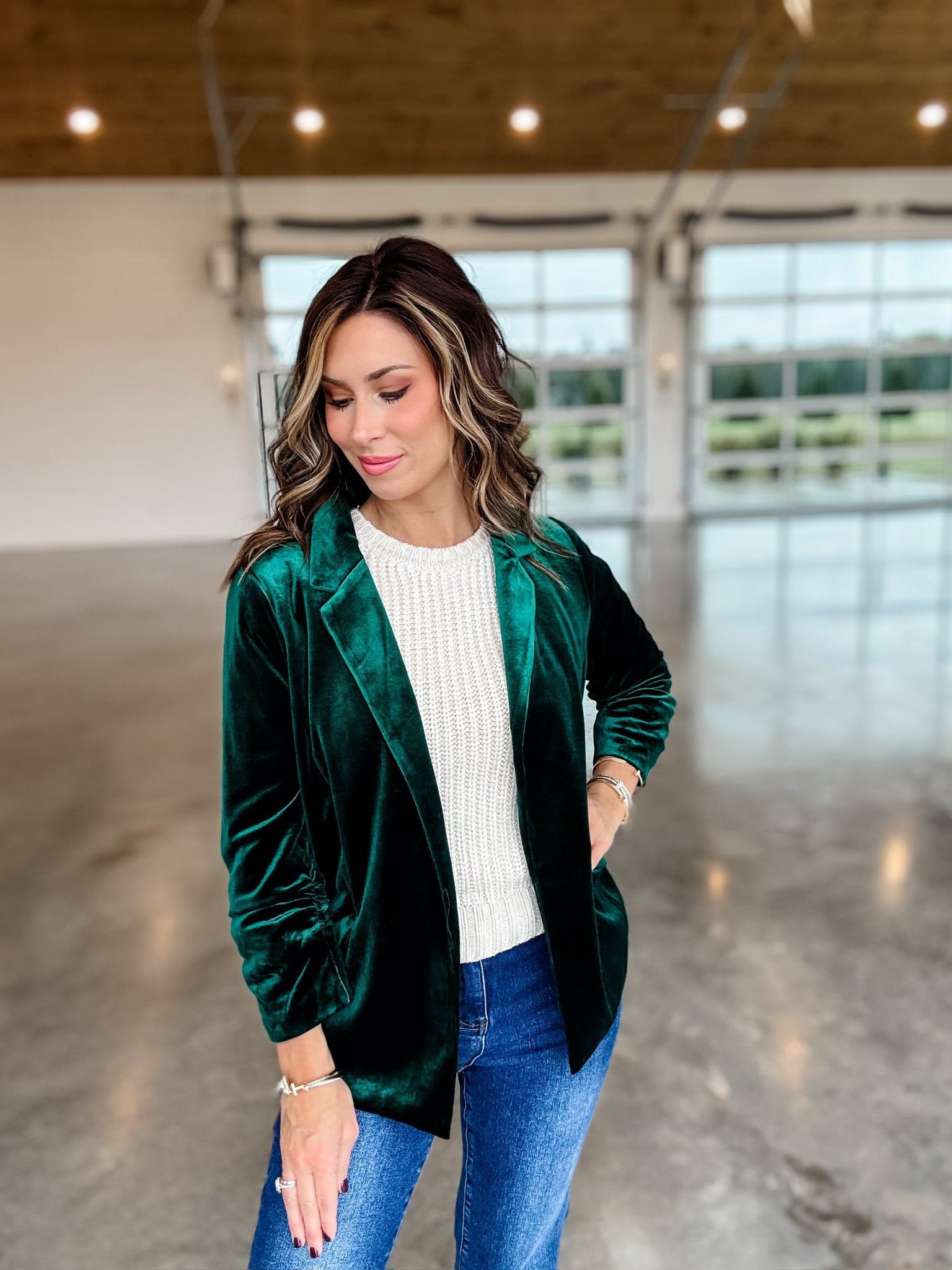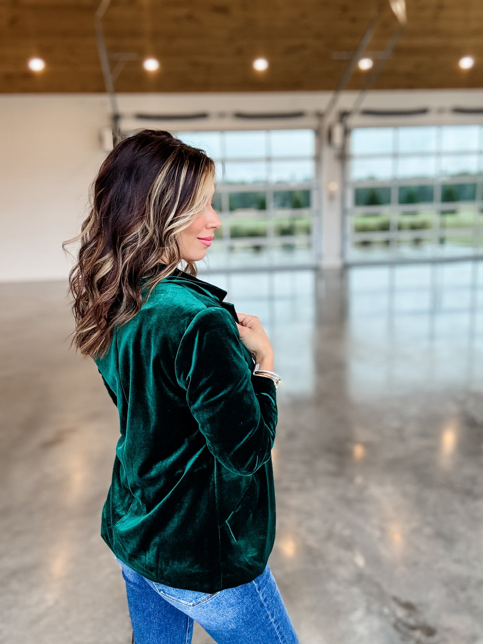 Introducing the Velvet Dreams Blazer, crafted from luxurious green velvet for a formal yet chic look. Its unique texture is sure to stand out in any ensemble, making it perfect for occasions that require eye-catching sophistication.