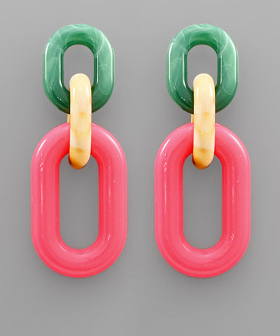 These chain link earrings feature 3 different colors and go in as a stud.