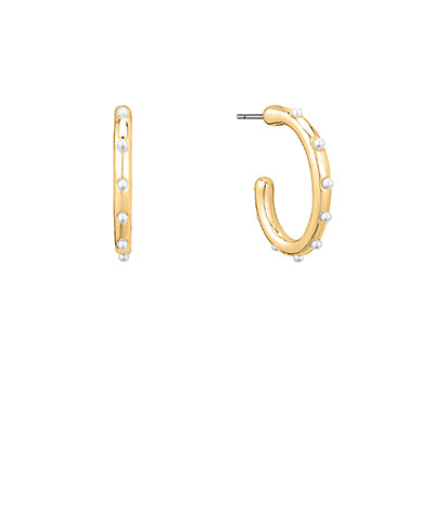 These Ady Tiny Pearl Hoops are the perfect addition to any jewelry collection. Made with dainty gold and a timeless pearl, they add a touch of elegance to any outfit. Elevate your style with these delicate yet eye-catching earrings.