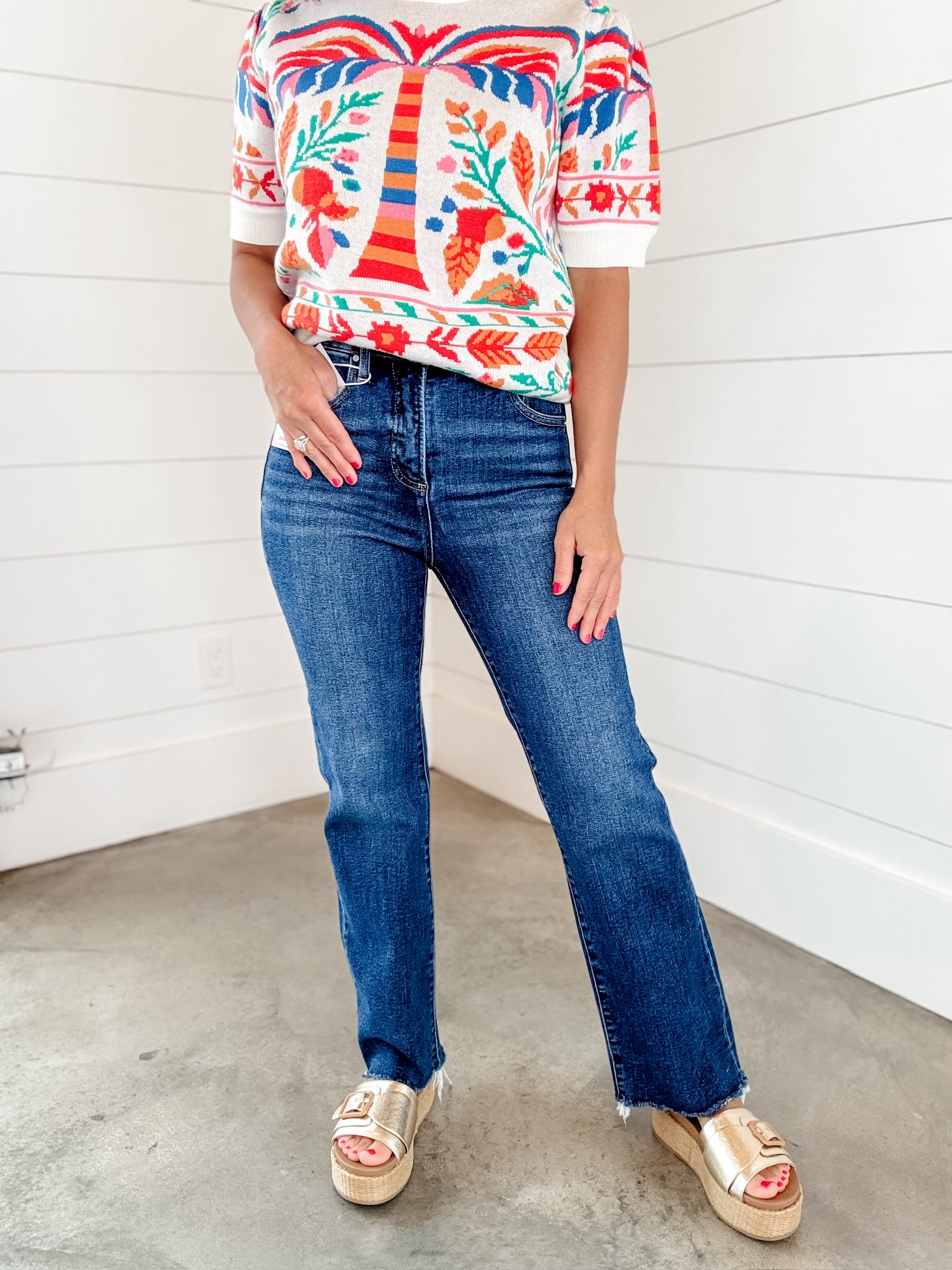 The Andi High Rise Straight Jeans are crafted from dark denim, offering a refined aesthetic and versatile styling options. With integrated tummy control, these jeans provide a flattering silhouette while ensuring comfort. The high-rise design ensures optimal coverage and support, making them suitable for various body types.