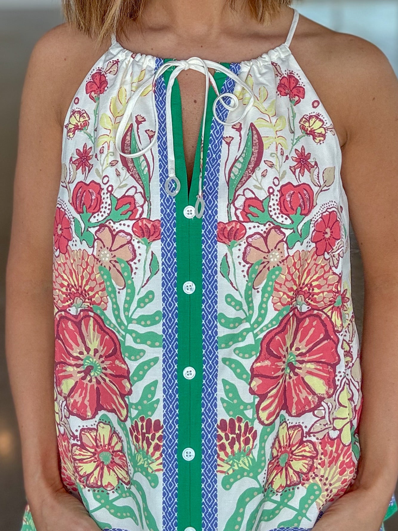 The bold green trim adds a fresh pop of color, giving this floral tank a unique, standout look that pairs perfectly with denim, shorts, or the matching set.