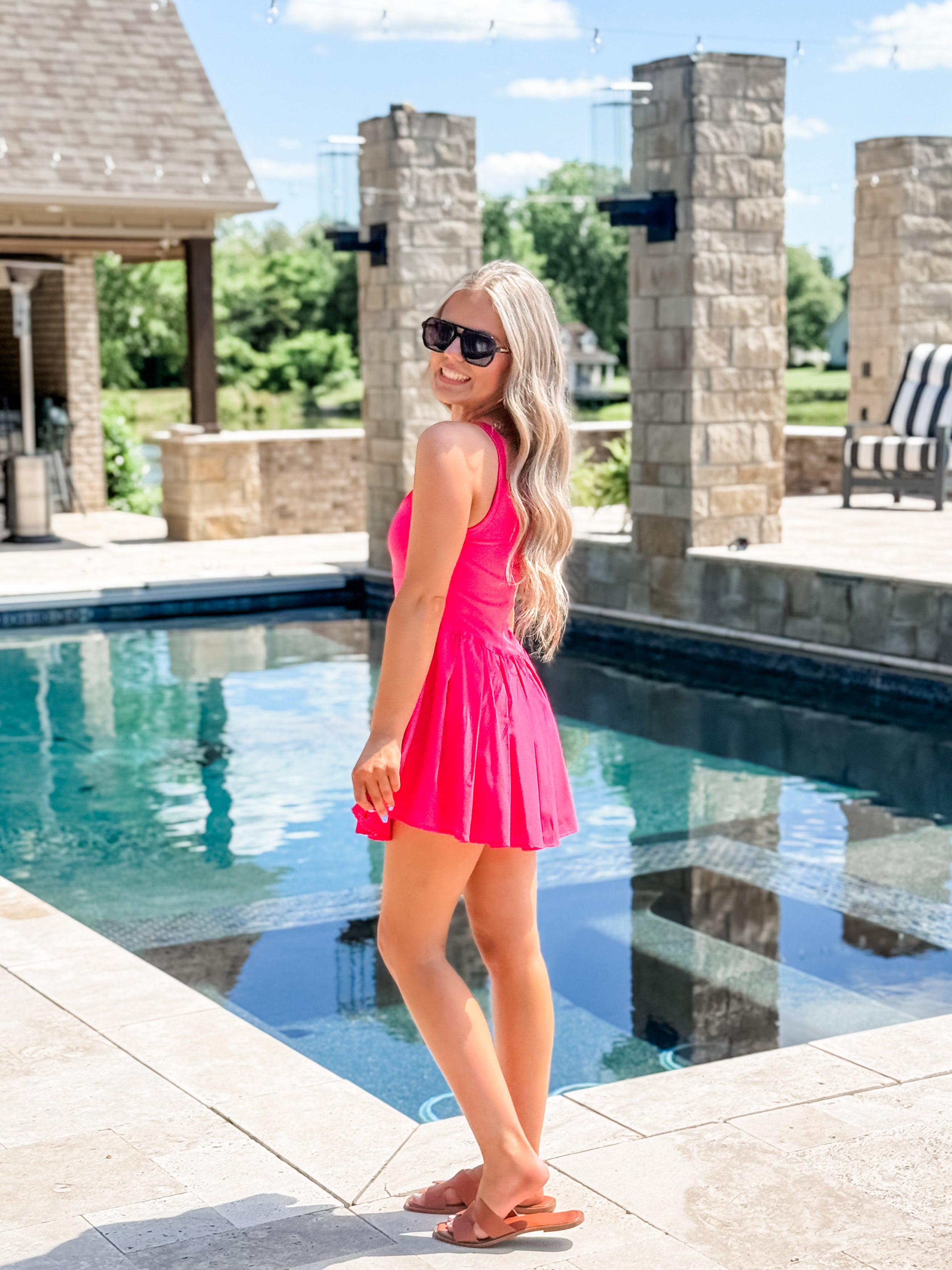 This She's An Ace Athletic Dress boasts a sleek scoop neck and built-in shorts, offering both style and functionality for the active individual. The perfect balance of comfort and performance, this dress is designed to keep you cool and stylish throughout your day.